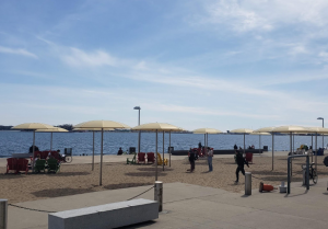 ダウンタウン内はショップやオフィスが多いため、自粛規制のかかっている時期は特に人がいないような気がしますが、最近お天気がだいぶ暖かくなりだしてからは、街中の公園や、市内最南端にありますオンタリオ湖のありますハーバーフロントエリアではソーシャルディスタンシングを保ちながら市民が散策したり、サイクリング、日光を楽しむ姿を良く見かけます。ハーバーフロントには地元ビールのブルワリーもあり、テイクアウトができるのですが、結構な人が並んでいました!ハーバーフロントは夏の間は毎週末様々なフェスティバルやコンサートが開催されたり、トロント・アイランドへのフェリー発着場となっていて、地元の人と観光客でとっても賑わう場所です。皆さんもトロントへ留学へ訪れましたら必ず行ってみてくださいね。