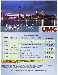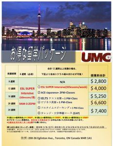 1. トロント校ESL Intensiveパッケージプロモーション