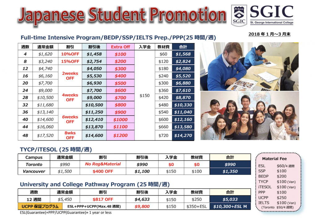 トロントの大人気校English School of Canadaよりキャンペーンのお知らせです。