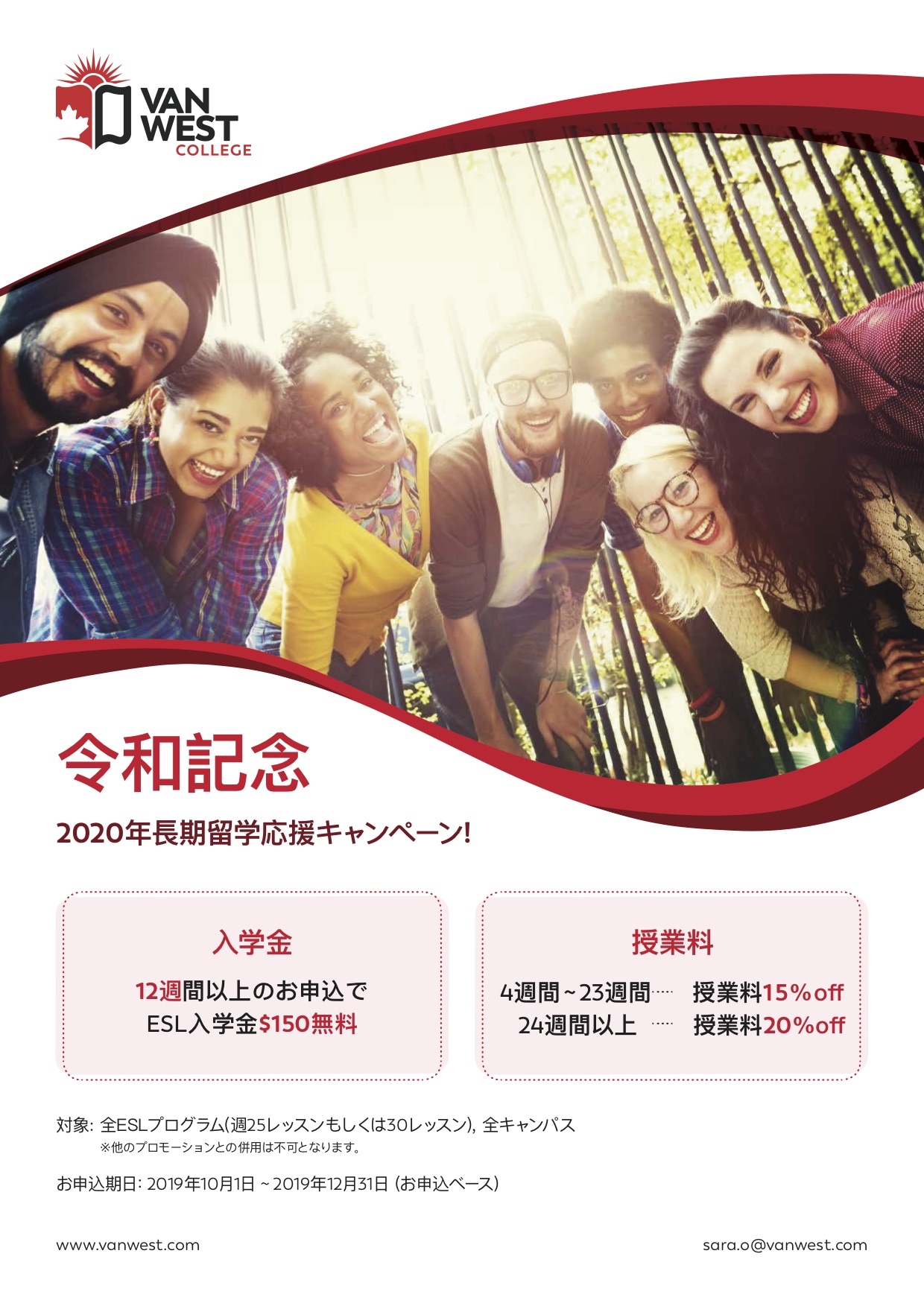 VanWestより2020年長期留学キャンペーンのお知らせ!